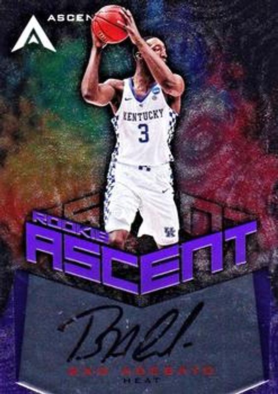 The Bam Adebayo 2017 Ascension #ASC-BAM Rookie Ascent Autographs - Purple /50 card is 1 of 18 Bam Adebayo's card variations in the 2017 Ascension set being tracked by Sports Card Investor, including #119a Base, #119b Base, #119a Blue /125, #119b Blue /125, and #119b Red /75.