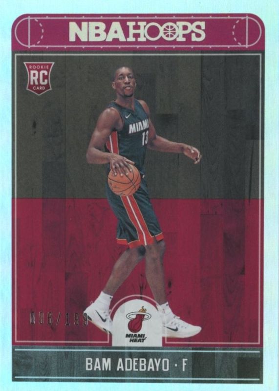 The Bam Adebayo 2017 Hoops #264 Silver /199 Rookie card in Raw condition has moved down -$3.48 (-21.8%) in the last 30 days and was last sold for $12.50 .