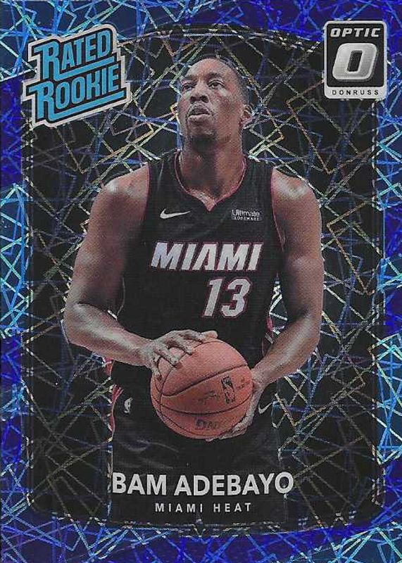 The Bam Adebayo 2017 Optic #187 Blue Velocity Rookie card in Raw condition has moved up $6.31 (+70.2%) in the last 30 days and was last sold for $15.30 .