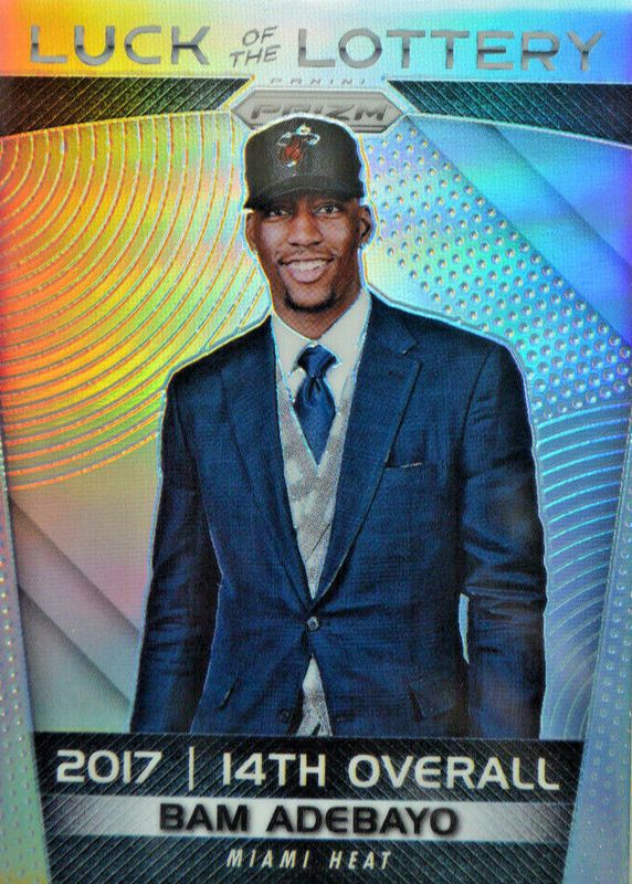 The Bam Adebayo 2017 Prizm #LL-BAM Luck of the Lottery - Silver Rookie card in Raw condition has not changed in price in the last 30 days and was last sold for $41.23 .