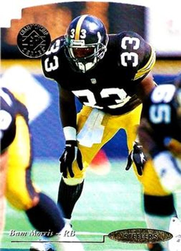 The Bam Morris 1995 SP Championship #187 Die-Cut card is 1 of 2 Bam Morris' card variations in the 1995 SP Championship set being tracked by Sports Card Investor, including Base.