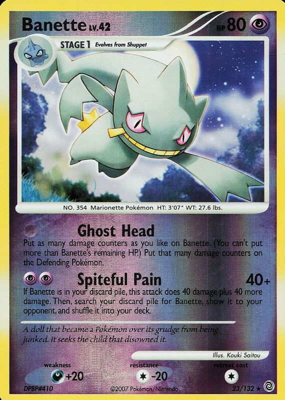 Banette 2007 Diamond & Pearl: Secret Wonders #023/132 Reverse Holo RAW TCG (LIGHTLY PLAYED) Price Guide