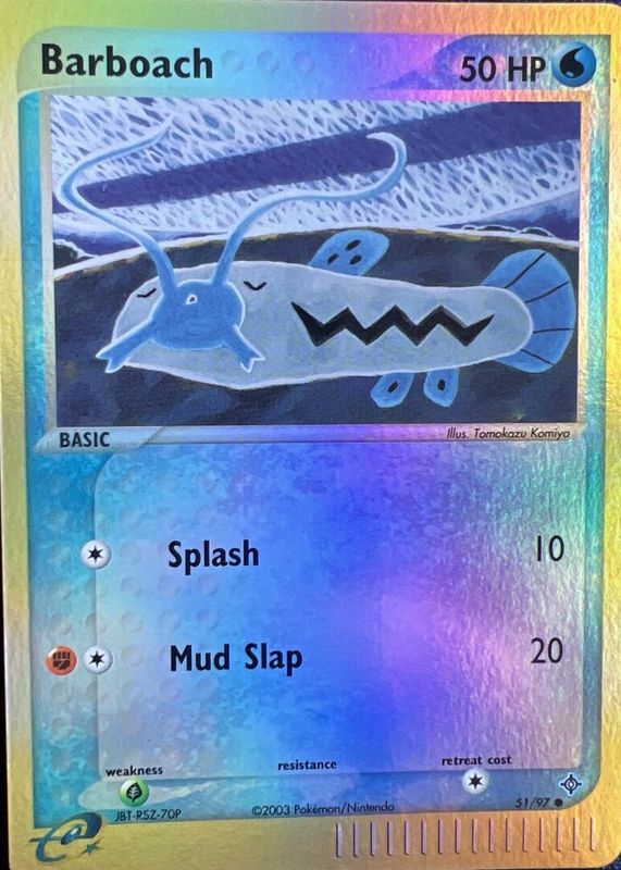 The Barboach 2003 EX: Dragon #51/97 Reverse Holo card in Raw TCG (Near Mint) condition has not changed in price in the last 30 days and was last sold for $10.99 .