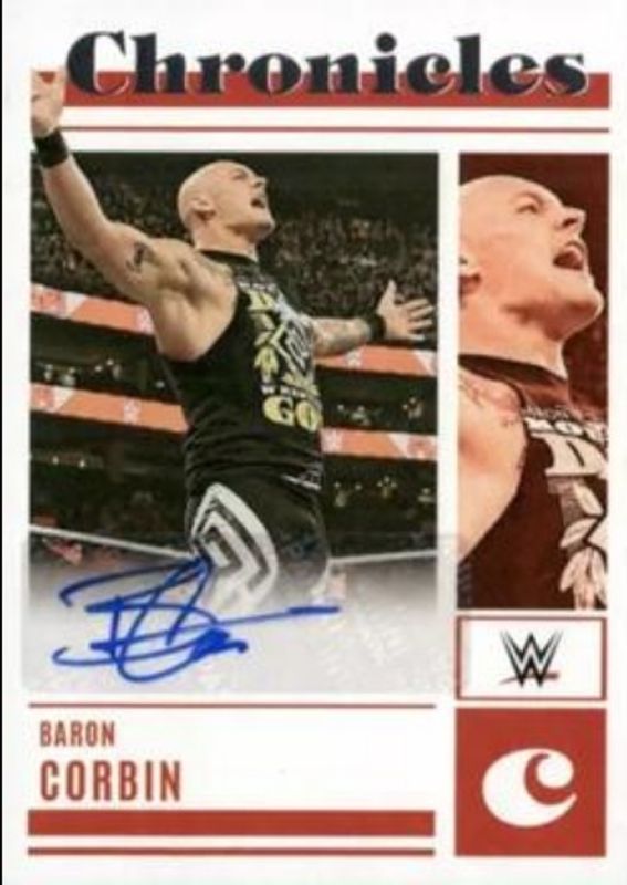 The Baron Corbin 2023 Chronicles WWE #CS-BCB Chronicles Signatures card is 1 of 31 Baron Corbin's card variations in the 2023 Chronicles WWE set being tracked by Sports Card Investor, including Base, Bronze, Pink /199, Red /199, and Blue /99.