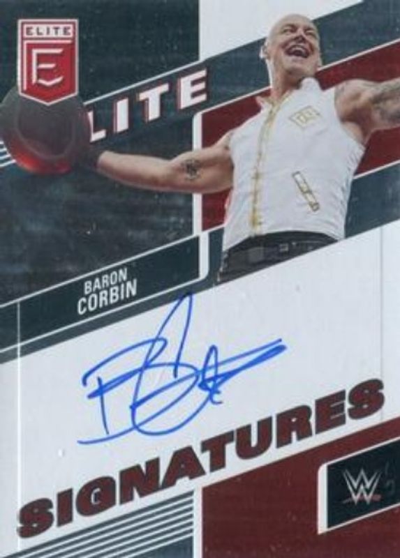 The Baron Corbin 2023 Elite WWE #ES-BCB Elite Signatures card is 1 of 9 Baron Corbin's card variations in the 2023 Elite WWE set being tracked by Sports Card Investor, including Elite Signatures - Green, Elite Signatures - Red /49, Elite Signatures - Blue /25, Passing the Torch Signatures /25, and Elite Signatures - Gold /10.