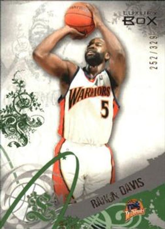 The Baron Davis 2006 Topps Luxury Box #26 Green /329 card is 1 of 7 Baron Davis' card variations in the 2006 Topps Luxury Box set being tracked by Sports Card Investor, including Base /999, Red /499, Blue /49, Bronze /19, and Silver /9.