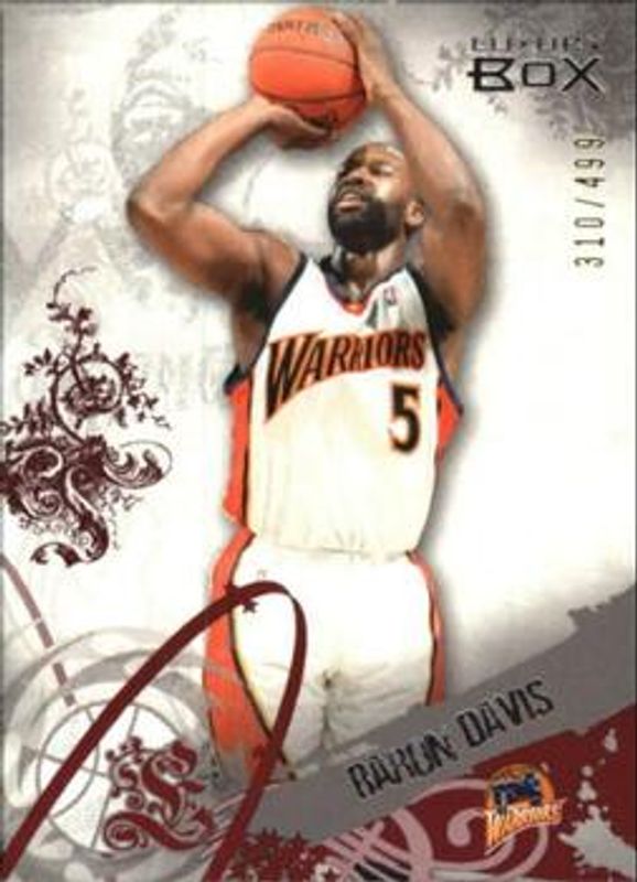 The Baron Davis 2006 Topps Luxury Box #26 Red /499 card is 1 of 7 Baron Davis' card variations in the 2006 Topps Luxury Box set being tracked by Sports Card Investor, including Base /999, Green /329, Blue /49, Bronze /19, and Silver /9.