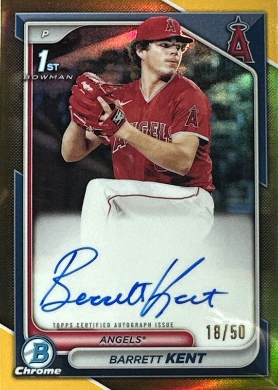 2024 Bowman Chrome Barrett Kent RC Auto /50 Los Angeles Angels #CPA-BK True Gold