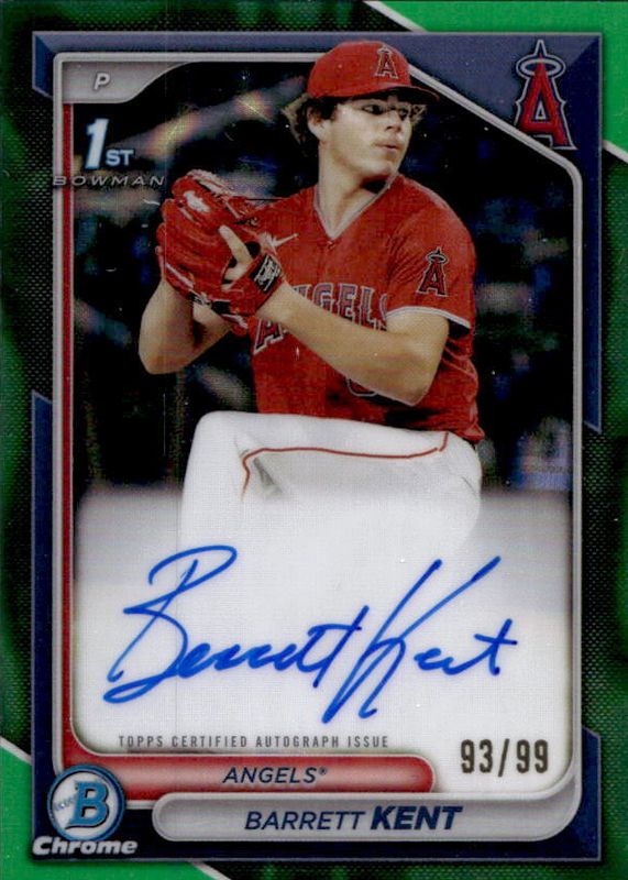 2024 Bowman Chrome Barrett Kent 1st Pros Auto Green Lava Refractor #93/99 Angels