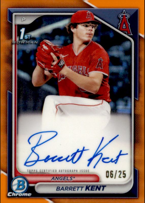 2024 Bowman Baseball Barrett Kent AUTO 1st Bowman Chrome ORANGE 6/25 Angeles SP