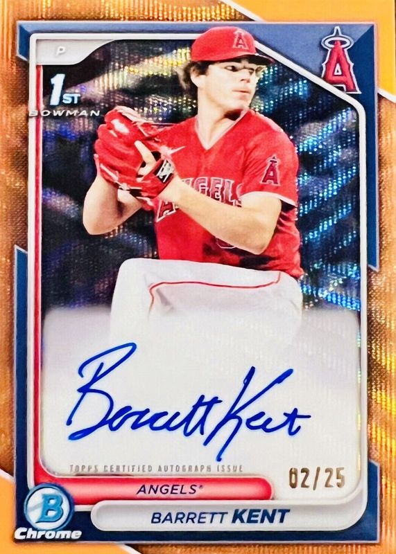 2024 Bowman Chrome Barrett Kent Angels 1st Orange Wave Auto /25
