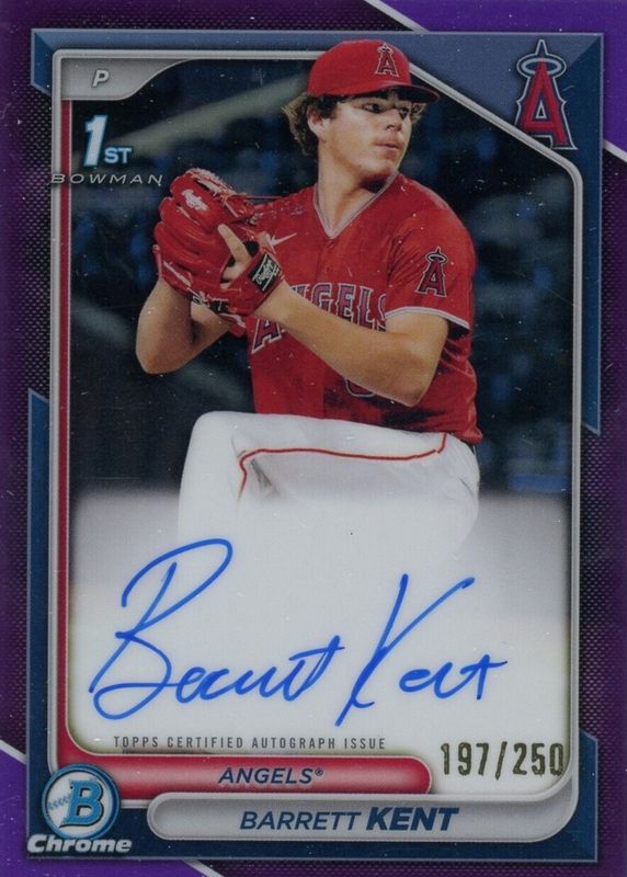 2024 Bowman Chrome 1st Purple Refractor Barrett Kent Angels RC Rookie AUTO 6/250