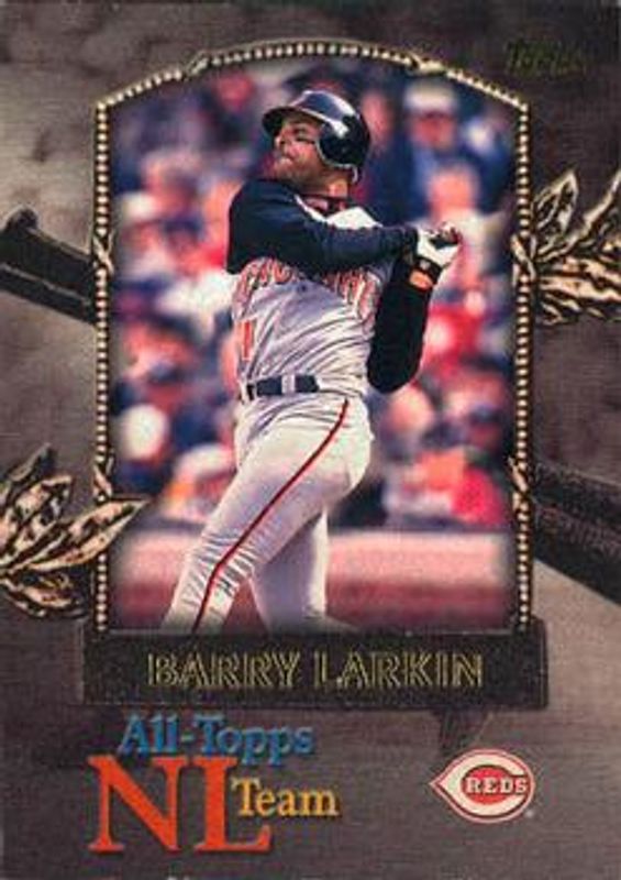 The Barry Larkin 2000 Topps #AT6 All Topps card is 1 of 3 Barry Larkin's card variations in the 2000 Topps set being tracked by Sports Card Investor, including Home Team Advantage, and Limited All Topps.