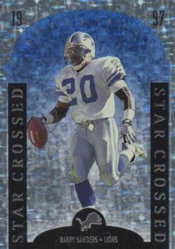 The Barry Sanders 1997 Upper Deck #SC13 Star Crossed card is 1 of 9 Barry Sanders' card variations in the 1997 Upper Deck set being tracked by Sports Card Investor, including #191 Base, #39 Base, #191 Game Dated Moment Foils, #3 Game Dated 5x7, and #SA17 Star Attractions.