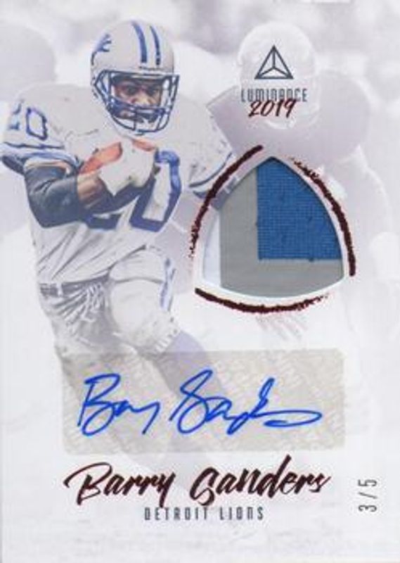Barry Sanders 2019 Luminance #AJ-BS Autographs Jerseys Prime - Red /5 RAW Price Guide