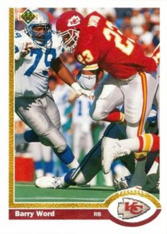 The Barry Word 1991 Upper Deck #40 Base card is 1 of 3 Barry Word's card variations in the 1991 Upper Deck set being tracked by Sports Card Investor, including #40b Base, and #40c Base.