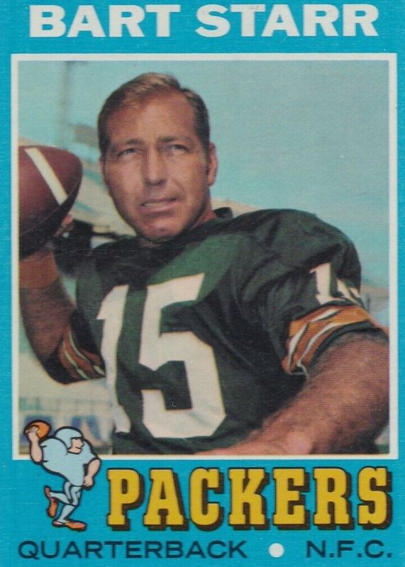 This card is 1 of 4 Bart Starr's card variations in the 1971 Topps set being tracked by Sports Card Investor, including Game Inserts, Posters, and Posters - Glossy.