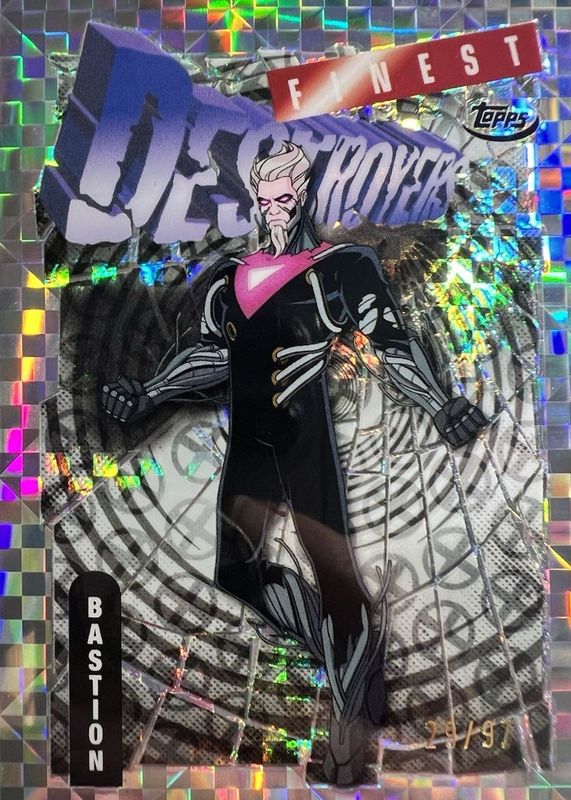 This card is 1 of 22 Bastion's card variations in the 2025 Topps Finest X-Men 97 set being tracked by Sports Card Investor, including Common, Common - Refractor, Uncommon, Common - Protector Refractor, and Uncommon - Protector Refractor.