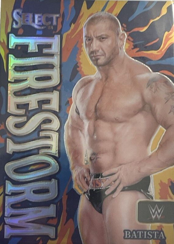 The Batista 2024 Select WWE #7 Firestorm /(SSP) card in Raw condition has not changed in price in the last 30 days and was last sold for $34.33 .