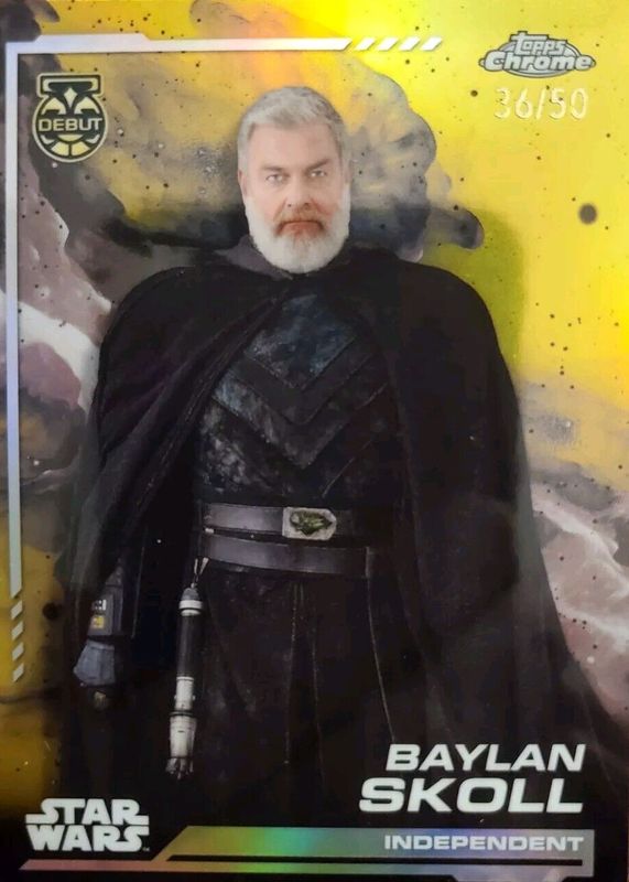 The Baylan Skoll 2024 Topps Chrome Star Wars #5 Gold Refractor /50 Rookie card in Raw condition has not changed in price in the last 30 days and was last sold for $32.88 .