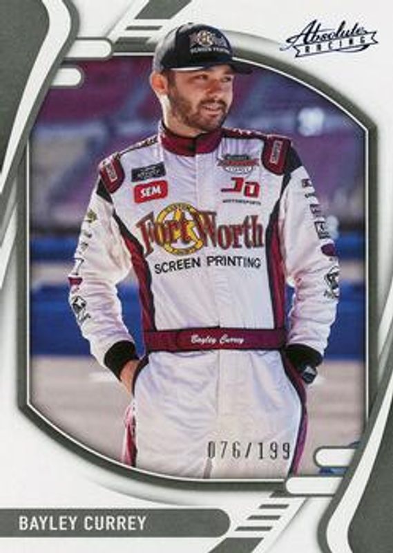 The Bayley Currey 2022 Chronicles NASCAR #4 Absolute Blue /199 card is 1 of 18 Bayley Currey's card variations in the 2022 Chronicles NASCAR set being tracked by Sports Card Investor, including Absolute, Absolute Autographs, Contenders Optic, Contenders Optic Autographs, and Contenders Optic Green.