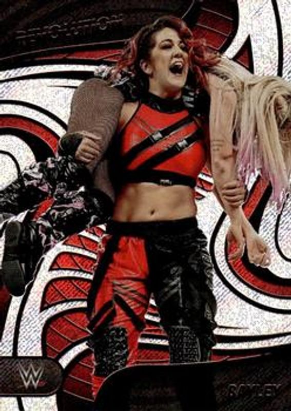 The Bayley 2023 Revolution WWE #9 Base card is 1 of 23 Bayley's card variations in the 2023 Revolution WWE set being tracked by Sports Card Investor, including Astro, Fractal, Galactic, Groove, and Impact /199.