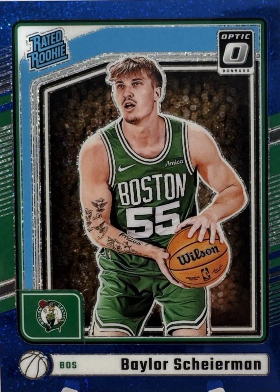 The Baylor Scheierman 2024 Optic #263 Blue Glitter /15 Rookie card in Raw condition has not changed in price in the last 30 days and was last sold for $9.99 .