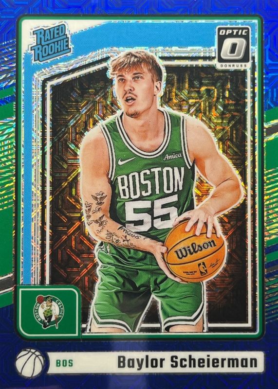 This card is 1 of 126 Baylor Scheierman's card variations in the 2024 Optic set being tracked by Sports Card Investor, including Base, Blue Velocity, Checkerboard, Choice, and Fast Break.