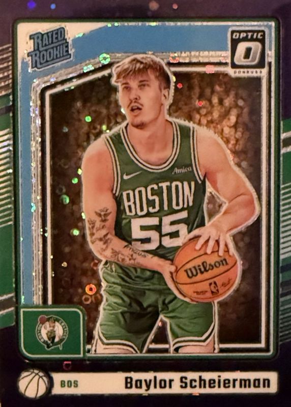 The Baylor Scheierman 2024 Optic #263 Fast Break Purple /99 Rookie card in Raw condition has moved down -$0.65 (-8.5%) in the last 30 days and was last sold for $6.99 .