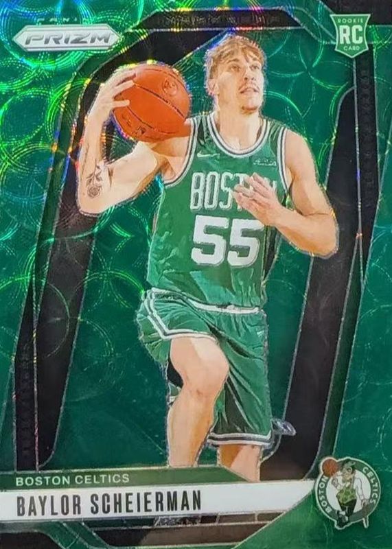 The Baylor Scheierman 2024 Prizm #236 Choice Green /8 Rookie card in Raw condition has not changed in price in the last 30 days and was last sold for $150.00 .