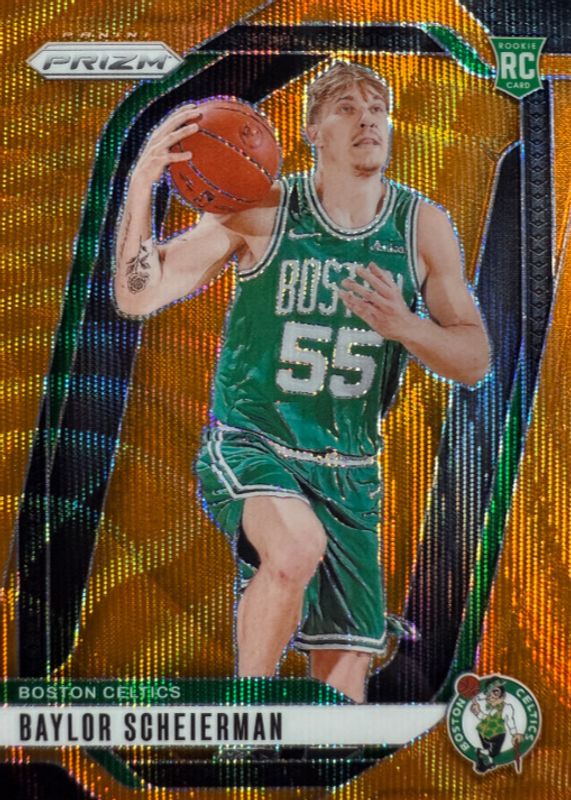 Baylor Scheierman 2024-25 Panini Prizm 22/60 Orange Wave RC Celtics #236