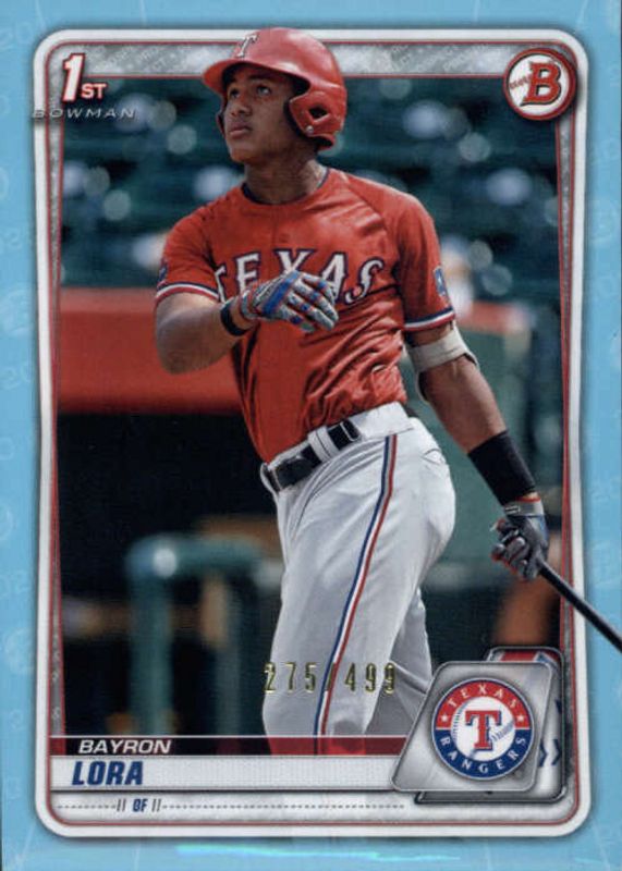 2020 Bowman Bayron Lora BP-52 1st Sky Blue Paper /499 | Texas Rangers