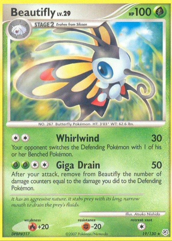 Beautifly 2007 Diamond & Pearl #019/130 Reverse Holo RAW TCG (NEAR MINT) Price Guide