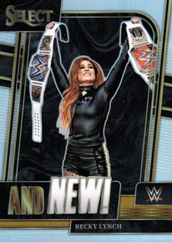 The Becky Lynch 2023 Select WWE #7 And New! Silver card is 1 of 116 Becky Lynch's card variations in the 2023 Select WWE set being tracked by Sports Card Investor, including #247 Base, #76 Base, #340 Base, #187 Base, and #247 Orange Flash.