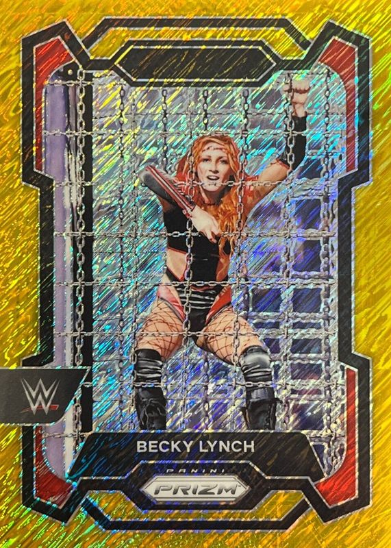 The Becky Lynch 2024 Prizm WWE #120 Gold Shimmer /5 card in Raw condition has not changed in price in the last 30 days and was last sold for $355.00 .