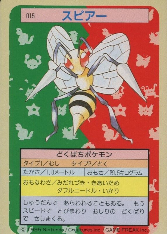 Beedrill 1997 Japanese Topsun #015 Green Back (2nd Edition) RAW TCG (HEAVILY PLAYED) Price Guide