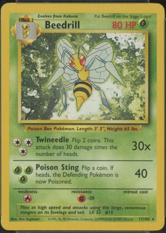 Beedrill 1999 Pokemon Game #17 Unlimited RAW TCG (HEAVILY PLAYED) Price Guide