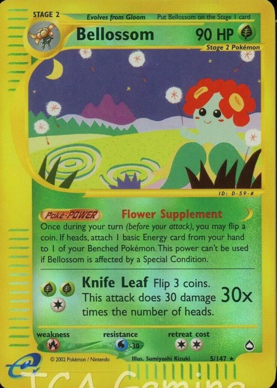 Bellossom 2003 Aquapolis #005/147 Reverse Holo RAW TCG (NEAR MINT) Price Guide