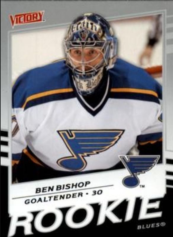 The Ben Bishop 2008 Upper Deck #332 2008 Upper Deck Victory Update Rookie card is 1 of 11 Ben Bishop's card variations in the 2008 Upper Deck set being tracked by Sports Card Investor, including Young Guns Base, Young Guns - Jumbo, Young Guns - UD Exclusives /100, Young Guns - UD High Gloss /10, and Young Guns - Printing Plates Black /1.