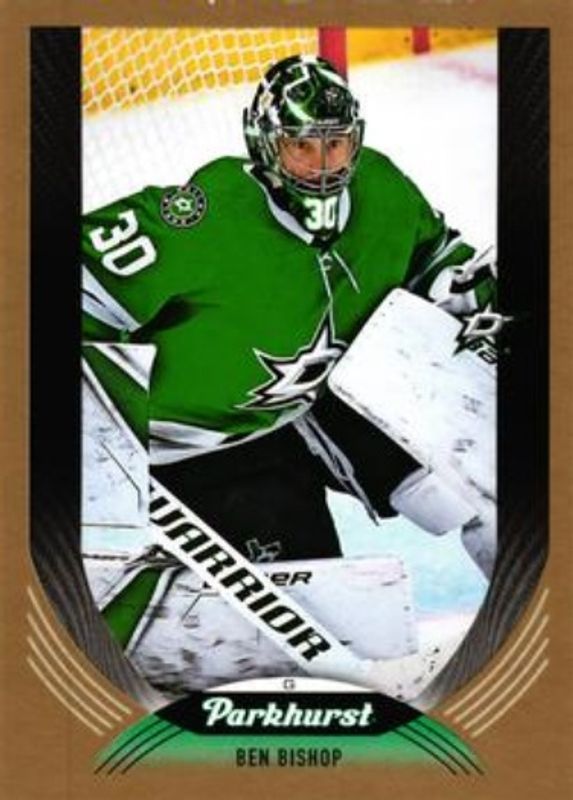 The Ben Bishop 2020 Upper Deck Parkhurst #155 Gold card is 1 of 5 Ben Bishop's card variations in the 2020 Upper Deck Parkhurst set being tracked by Sports Card Investor, including Base, Silver, Bronze, and Gold Foil.