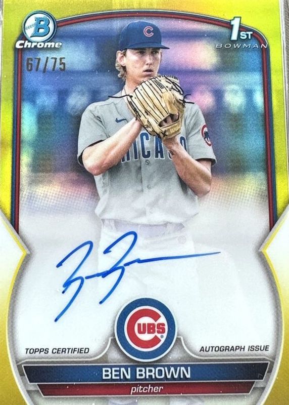 Ben Brown 2023 1st Bowman Chrome AUTO Prospect YELLOW REFRACTOR 35/75 Cubs RC R5