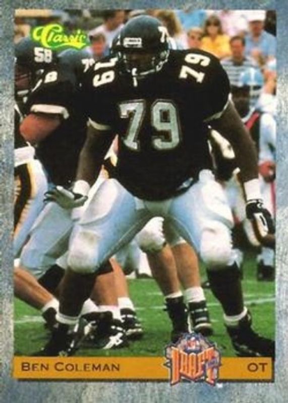 The Ben Coleman 1993 Classic #14 Base Rookie card is 1 of 3 Ben Coleman's card variations in the 1993 Classic set being tracked by Sports Card Investor, including Gold, and Autographs.