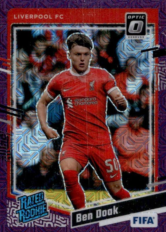 The Ben Doak 2023 Donruss #182 Optic - Purple Mojo /25 Rookie card in Raw condition has not changed in price in the last 30 days and was last sold for $12.95 .