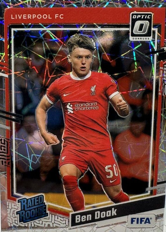 The Ben Doak 2023 Donruss #182 Optic - Velocity Rookie card in Raw condition has not changed in price in the last 30 days and was last sold for $6.75 .