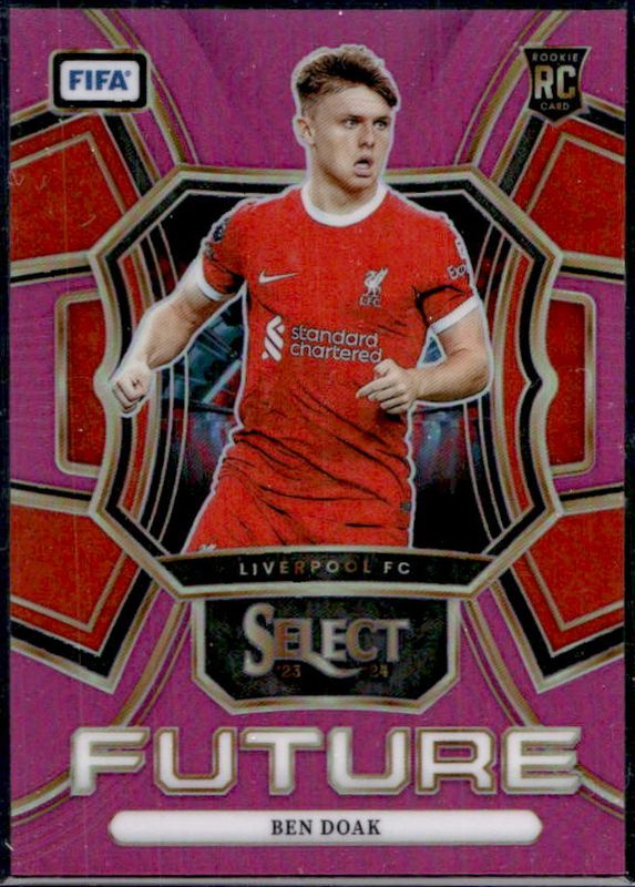 The Ben Doak 2023 Select FIFA #19 Select Future Pink /25 Rookie card is 1 of 9 Ben Doak's card variations in the 2023 Select FIFA set being tracked by Sports Card Investor, including Select Future Blue Pulsar, Select Future Peacock, Select Future Silver, Visionary /(SSP), and Select Future Tie-Dye /49.