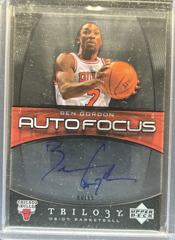 The Ben Gordon 2006 Upper Deck Trilogy #AF-BG Auto Focus card is 1 of 5 Ben Gordon's card variations in the 2006 Upper Deck Trilogy set being tracked by Sports Card Investor, including Base /499, Blue /33, Gold /10, and Generations Present Signatures.