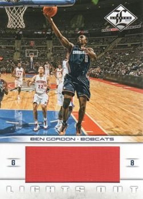 The Ben Gordon 2012 Limited #10 Lights Out - Materials /199 card is 1 of 5 Ben Gordon's card variations in the 2012 Limited set being tracked by Sports Card Investor, including Base /349, Silver Spotlight /49, Gold Spotlight /25, and Platinum Spotlight /1.