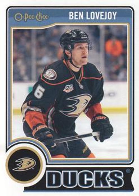 The Ben Lovejoy 2014 O-Pee-Chee #137 Base card is 1 of 6 Ben Lovejoy's card variations in the 2014 O-Pee-Chee set being tracked by Sports Card Investor, including Rainbow, Red, Retro, Retro Blank Backs, and Black Rainbow /100.