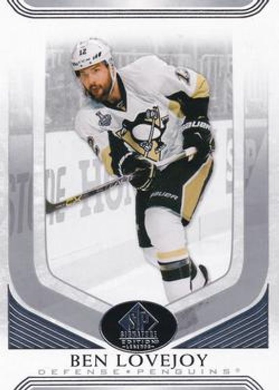 The Ben Lovejoy 2020 SP Signature Edition Legends #204 Base /99 card is 1 of 5 Ben Lovejoy's card variations in the 2020 SP Signature Edition Legends set being tracked by Sports Card Investor, including Gold Foil, Gold Spectrum Foil Autographs /25, Black /10, and Silver Script.