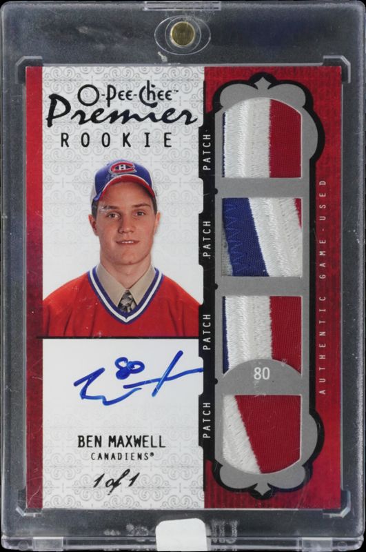 The Ben Maxwell 2008 O-Pee-Chee Premier #65 Base /299 Rookie card is 1 of 3 Ben Maxwell's card variations in the 2008 O-Pee-Chee Premier set being tracked by Sports Card Investor, including Gold Spectrum /5, and Black Spectrum.